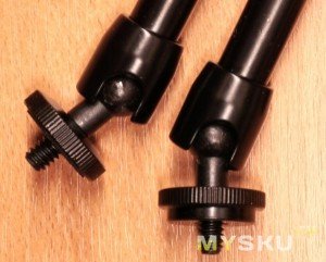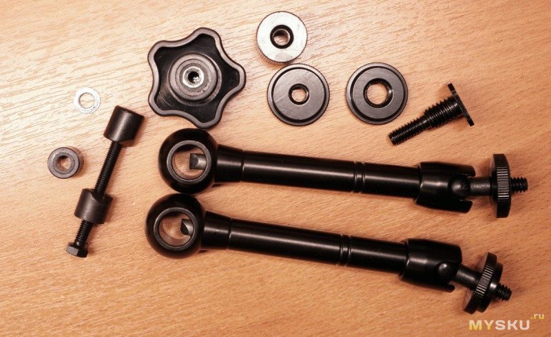 Позже возможно всё-таки переделаю на крепление камеры собственно в «горячий башмак» — так будет быстрее её снимать и ставить. Пока же у меня под рукой не нашлось гайки 1/4'' или такого метчика.Итак, посмотрим, как у китайцев получилось творческое переосмысление и реализация этой волшебной руки. В соответствии с общей идеей, положение должно быстро и удобно выставляться одним зажимом — винтом барашком.