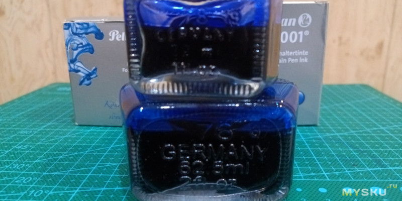 Далее… Я спокойно возвращаюсь домой и думаю: «Пора заправить ручку». Но дома меня ждет опять не блю блек, а очередная большая банка королевских синих. Королевские синие чернила у «Пеликана» одни из самых старых. Дата их рождения, Pelikan INK 4001 Royal Blue, временами прыгает у разных источников между 1891 и 1901 годами. Считается, что в Российской империи, ее княжествах и доминионах типа Тувы они начали продаваться в 1906 году. И рецептура тех ранних и современных чернил не аналогична. Она изменена в угоду зеленым и европейским законам в 2005 году, как было упомянуто на сайте производителя: Royal Blue — In early 2005 Pelikan changed the color formula of Royal Blue in bottles and cartridges to a more vibrant. То есть в начале 2005 года компания Pelikan изменила формулу цвета Royal Blue в бутылках и картриджах, сделав его более ярким.