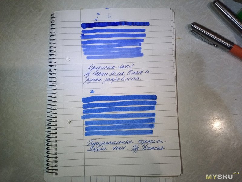 Те которые мы сейчас считаем неоригинальными ложатся равномерно и эти чернила явно нельзя отнести к сухим. И они ярко синие. И цвет, он мне понравился. Нет той серости или черной туманной дымки.
