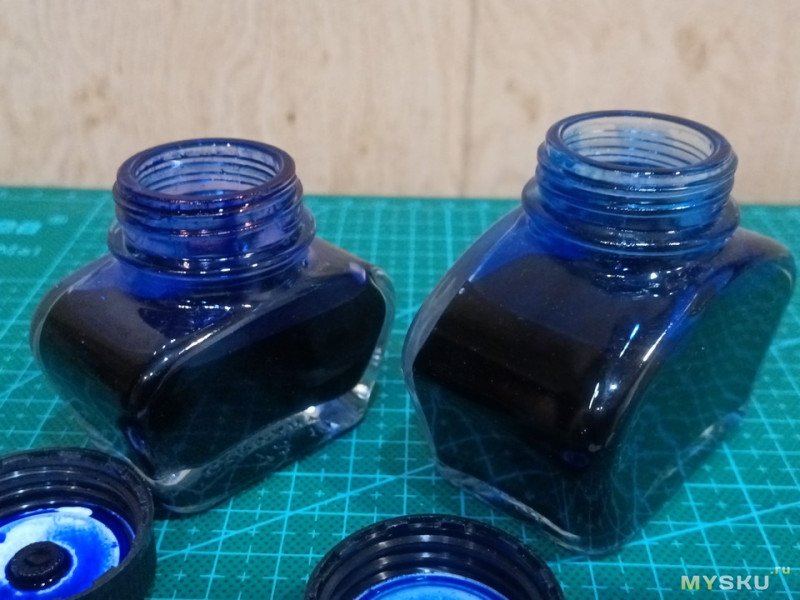 Так мне 4 раза присылали не тот цвет, а нужен был всего лишь Pelikan INK 4001 Blue-Black. Полученные первые две банки не вызывали подозрения и были аналогичны ранее купленным у местных продавцов до 22 года. Я спокойно их растратил, и остатки чернил, банки и коробки где-то остались в месте последней командировки. Но дома меня ждали еще две большие 62,5 мл емкости и опять не того цвета.