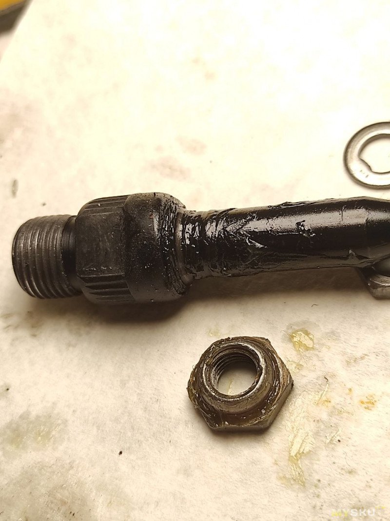 Добавил смазки к подшипникам. Я использую смазку Mannol Marine WR2, брал так же на озоне. Она водостойкая, как раз хорошо для педалей.