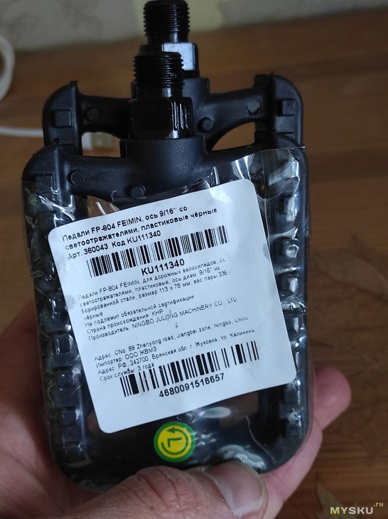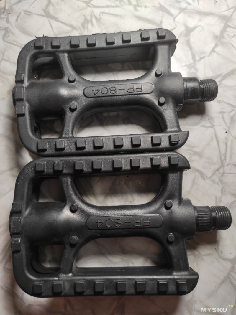 У меня на велике стояли хорошие полуконтактные педали шимано, мне стало их жалко и я решил заменить их на простые, дешевые. Горный велосипед большую часть времени используется по городу, где-то в повороте могу зацепить педалью за асфальт, за бордюр. На этом велосипеде редко использую контактные туфли, поэтому решил заменить их на простые. Поискал на озоне, нашел дешевые пластмассовые педали, в отзывах пишут, что внутри насыпные подшипники. Заказал.