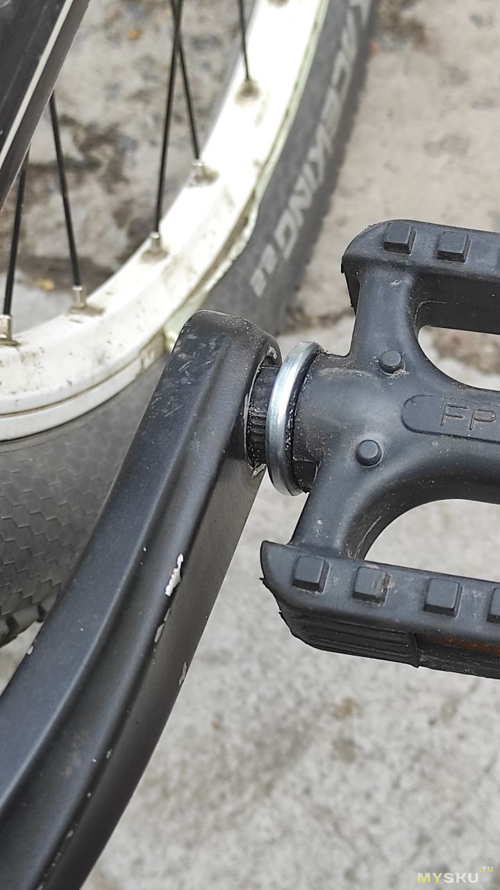 Для того, чтоб обеспечить минимальную защиту, решил поставить к педалям резинки. Диаметр оси 18мм, диаметр пластика в педали 20мм. Заказал набор резинок 018-020-1,0. Десяток резинок стоят чуть дороже, чем я купил педали.https://www.ozon.ru/product/koltso-018-020-1-0-18-1-mm-uplotnitelnoe-rezinovoe-10-shtuk-2044241108