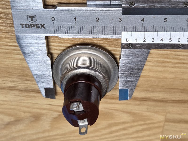 Длина кнопки от ранта вглубь панели 34 мм. Диаметр ранта 33мм, с резинкой 36мм.Резьба 24x0.75