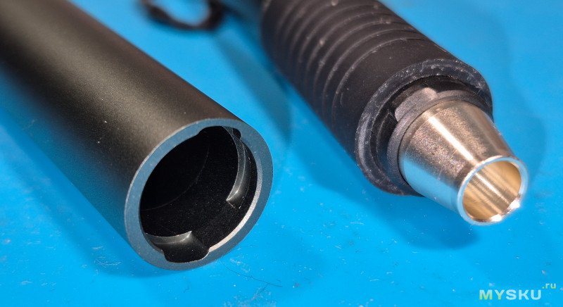 Колпачек фиксируется на паяльнике не большим поворотом по часовой стрелке.