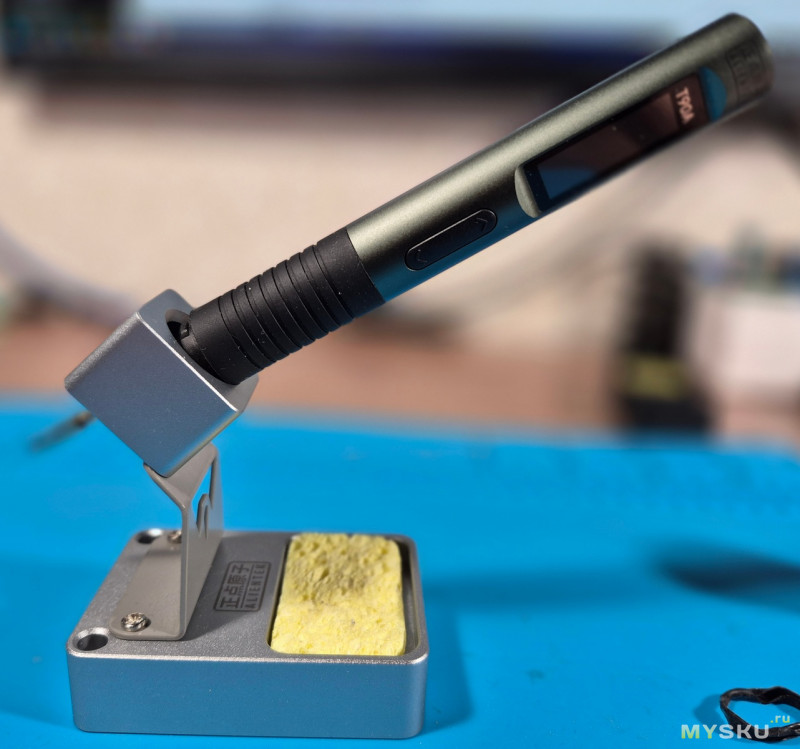 Для Т90А в минимальной комплектации не было возможности отказаться от металлической подставки для паяльника, так что пришлось переплачивать порядка 600 рублей. Да и ладно бы все нормально бы было, так нет- паяльник сидит в пепельнице неплотно, болтается. Это не дает покоя датчику движения, а он и так тут очень чувствительный.