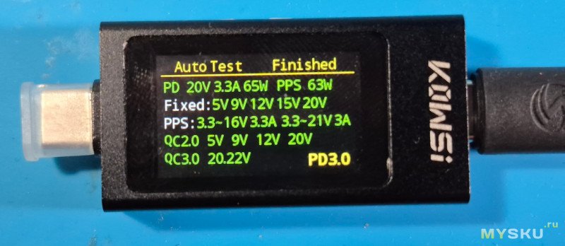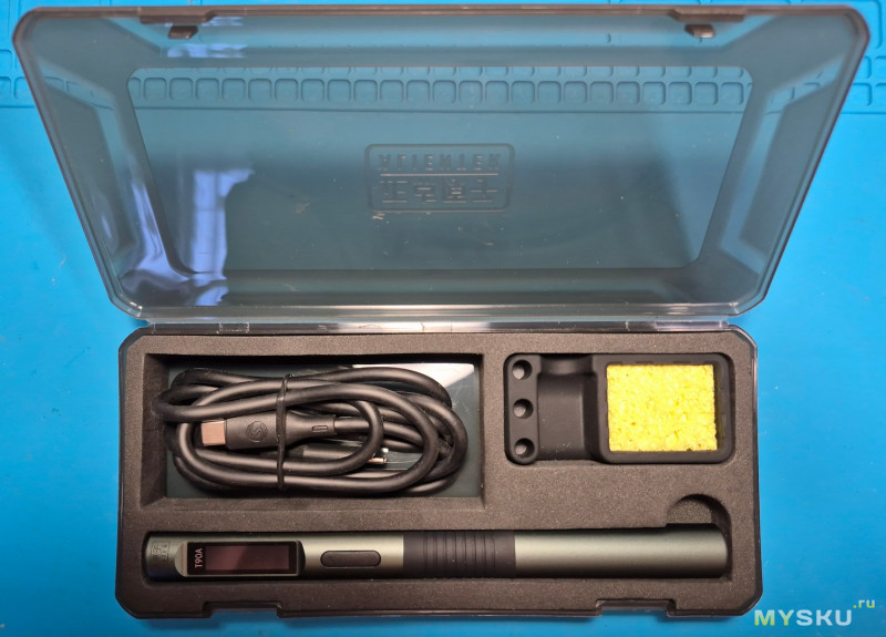 Питаться паяльник будет от ЗУ KEYRON WHC-GaN-A2C-63-BI на 65 Вт, и комплектного кабеля от паяльника.
