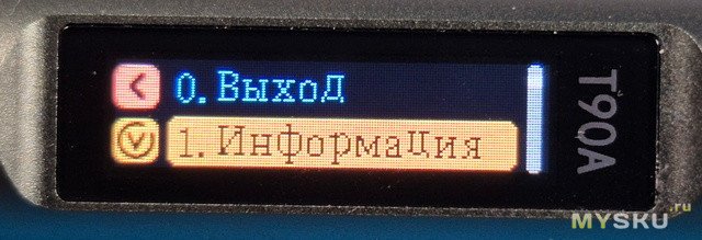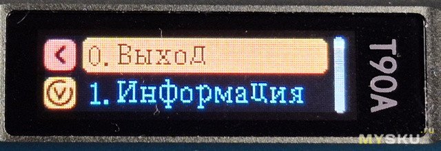 Управление девайсом с помощью двух кнопок «A» и «В». Долгое зажатие кнопки «В»- выбор пункта, зажажатие «А»- возврат назад. Через ~5 секунд бездействия автоматически выходит на главный экран.