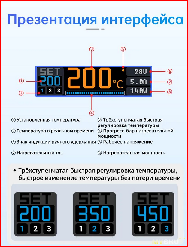 2. Шаг регулировки температуры нагрева.