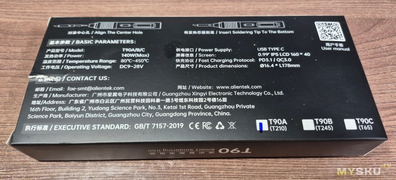 Периодически почитывая тему на 4PDA «Паяльники TS100/TS101, Pinecil, SH72» было решено приобрести ALIENTEK T90 с индексом «A», т.к. сейчас везде идет мелочевка которую только в микроскоп и видно. Ну и еще посмотрел видео от AlexGyver, что ускорило процесс выбора.
