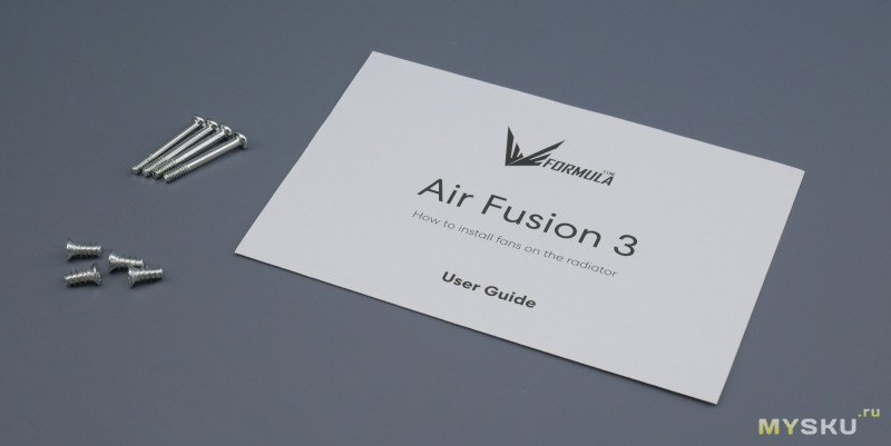 Вместе с модулем на 3 вентилятора производитель дает нам инструкцию и пару наборов длинных и коротких винтов, чтобы крепить блок к радиатору СЖО или корпусу ПК.