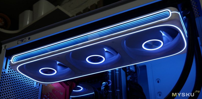 Основные отличительные качества — это необычность конструкции и дизайн со скрытым подключением. Внешне Formula V Air Fusion 3 выглядит очень презентабельно. Одни считают, что подобный модуль удобен при сборках, другие — противопоказан. Что делать, если один из вентиляторов выйдет из строя? Заменить придется всё. Но лично я считаю, что в виду гарантии и крайне редкого случая поломки вертушки, единый блок очень практичен, красив и прост в обслуживании.