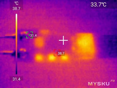 При непрерывной подаче 60В достаточно быстро добирается до 100C и не собирается останавливаться, но основной режим повторно-кратковременный, так что проблем быть не должно.Поразряжал конденсатор 390мкФ*450В с контролем напряжения.