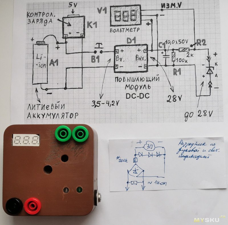 450В — тут произошел небольшой бабах, по итогу успел разрядился только до 100В.