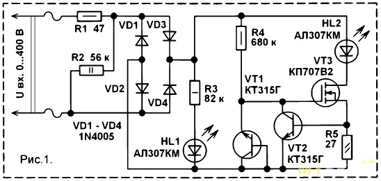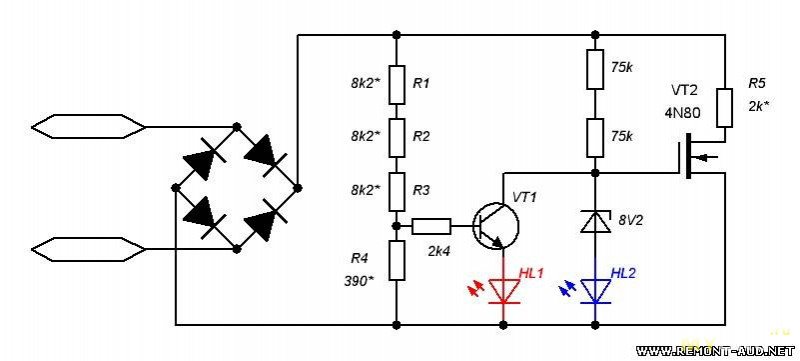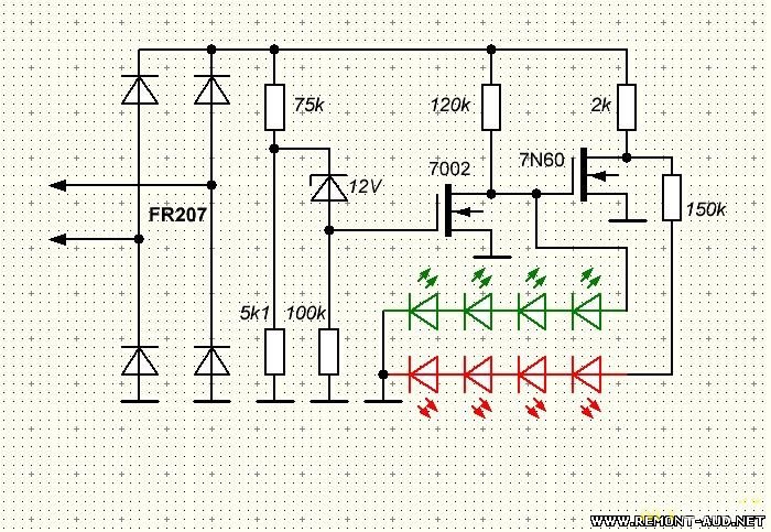 надо всего лишь 2 резистора и два светодиода самых простых.