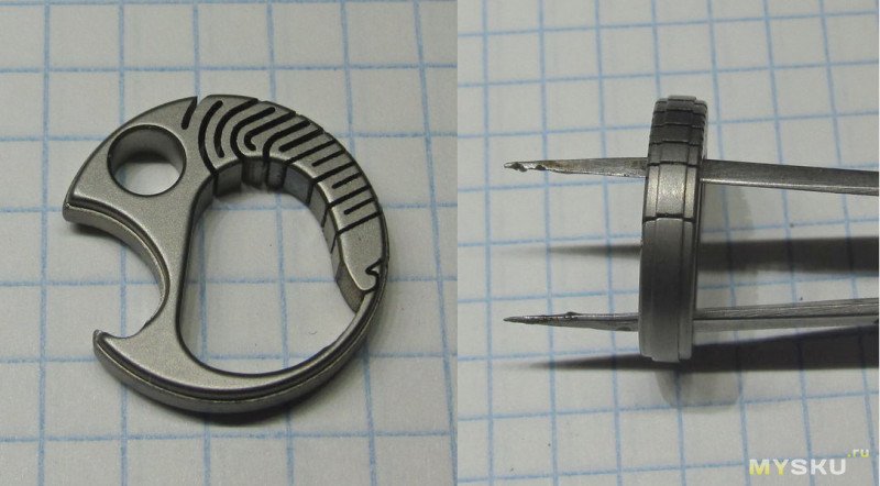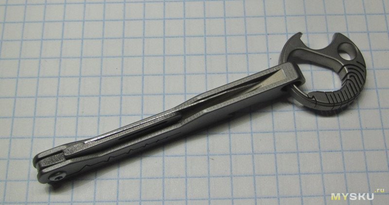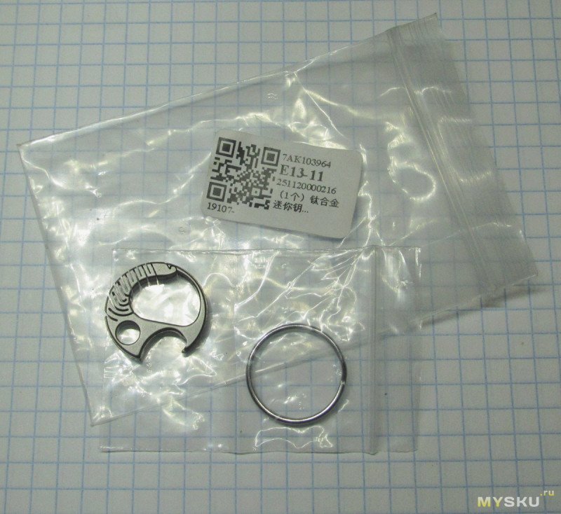 … и тут я внезапно вспомнил, что в приступе шопоголизма какое-то время назад купил еще кое-что. А именно — титановый карабинчик. Обошелся он мне на момент покупки примерно в $2, сейчас по ссылке доставка сильно подорожала, так что надо брать в другом месте