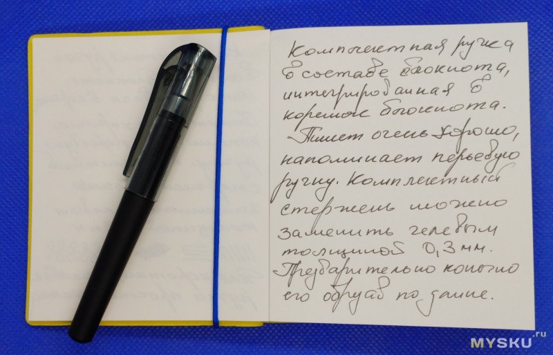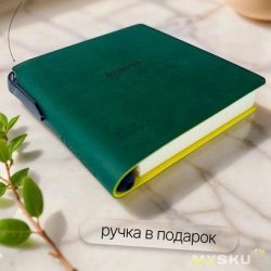 Наличие интегрированной в корешок блокнота ручки позволяет сразу же работать.