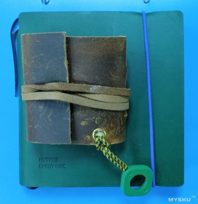 Зеленый цвет, с одной стороны – это воздействие на психику, ассоциации с оптимизмом, креативностью. Снижает уровень стресса, концентрация на выполняемой задачи, уверенность в своих действиях. С другой стороны, для меня это определенный символизм. Первый блокнот (по крайней мере который я помню), появился более 40 лет назад. Он по формату был в два раза меньше обозреваемого. Я только начинал свою трудовую деятельность. Без блокнота и именно без такого формата мне бы было достаточно трудно, уж слишком большой объем информации. Блокнот до сих пор живой.