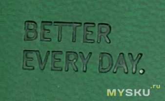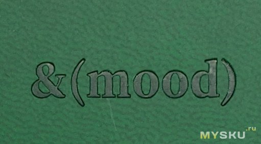 В нем зеленая, под кожу обложка блокнота с тиснением. Само тиснение на обложке и на корешке блокнота сделано аккуратно