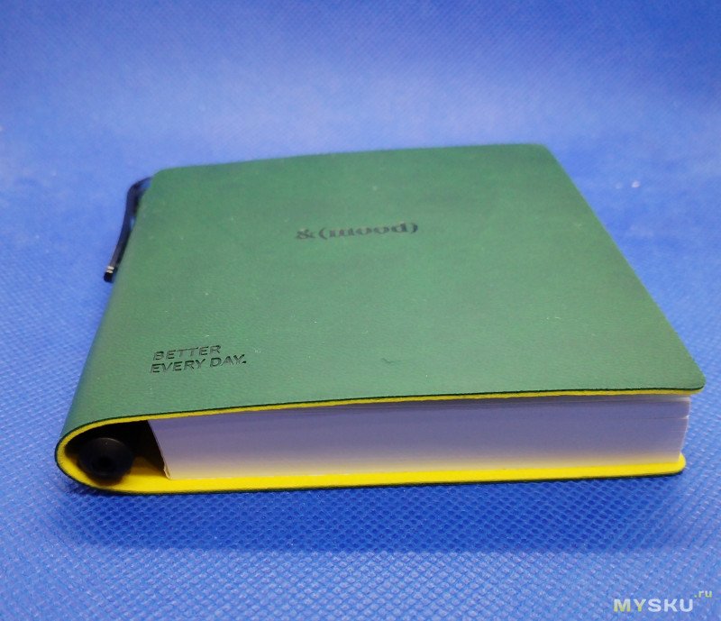 Блокнот тактильно приятно держать в руках. Зеленый цвет был важен, был выбран именно он, но об этом позже.