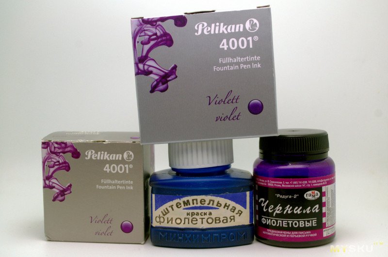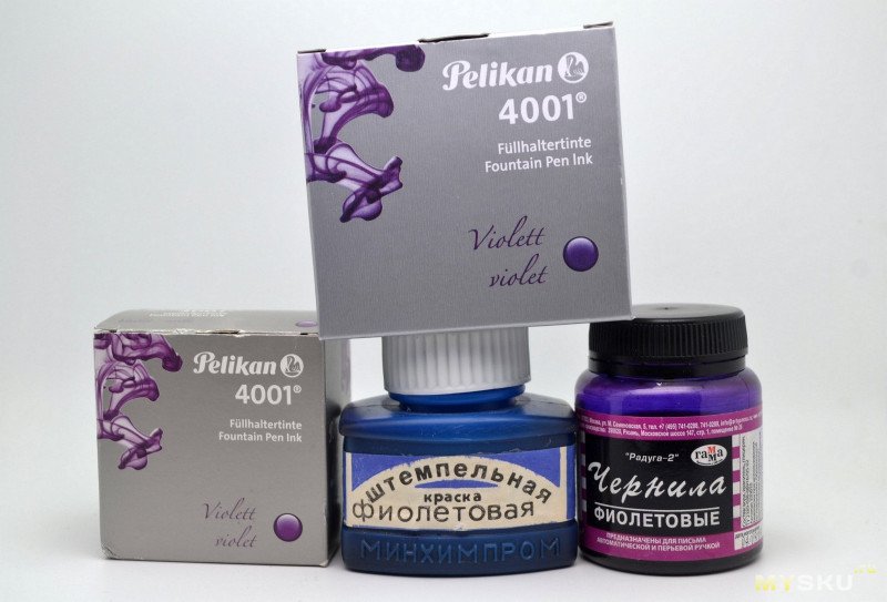 Фиолетовые чернила «Радуга-2» имеют красивый и хороший цвет, но сильно окрашивают саму ручку, поэтому использовал только в отдельной, специально выделенной под это ручке. В прошлом году брал в канцтоварах, но не новую партию, возможно тоже были старые запасы магазина.