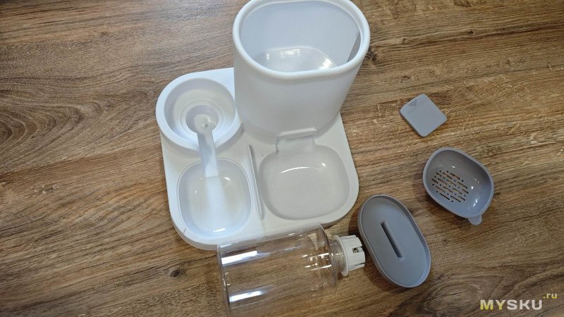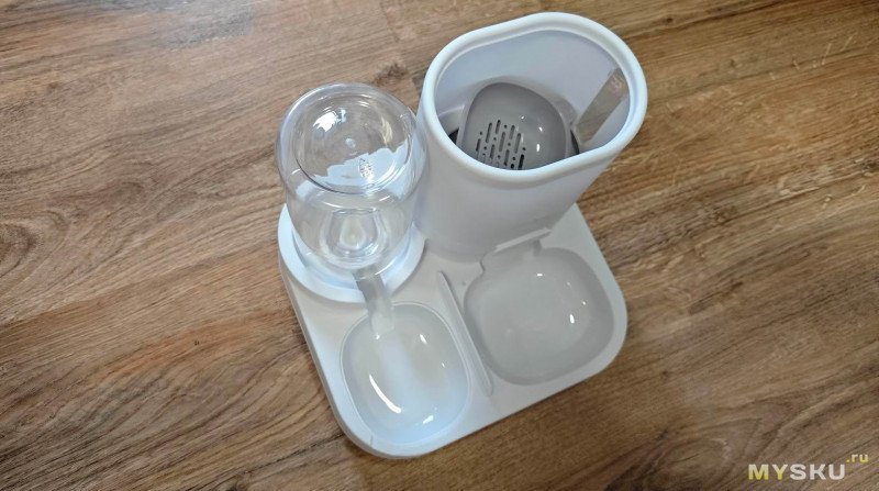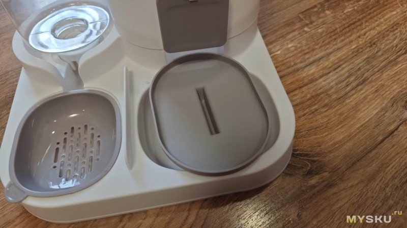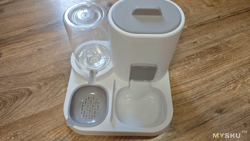 Основная часть корпуса цельнолитая и довольно легкая по весу. Отсек для корма съёмный. Его объем 1600 мл. Объём поилки 800 мл.