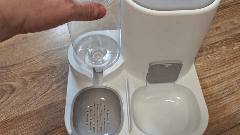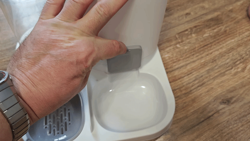 Убираем часть корма, имитируя его подъедание собакой и видим, как новая порция корма сама добавляется в кормушку.
