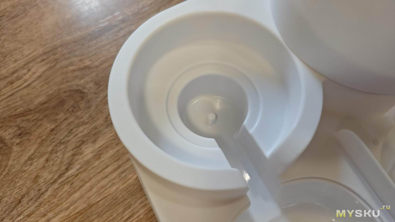 С установкой поддона в поилку у меня проблем не возникло, а вот установить вторую деталь в кормушку у меня не получалось. И так и сяк я её крутил, но внутрь отека кормления она никак не лезла.