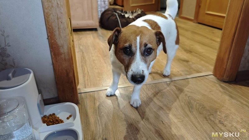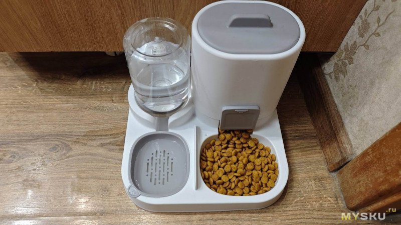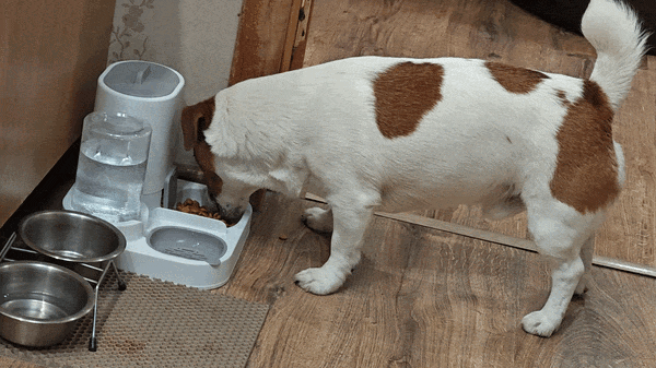 По итогу: кормушка-поилка понравилась как нам, так и собаке. Она быстро заправляется, сама доливает-досыпает воду-корм. Легко моется и не занимает много места.