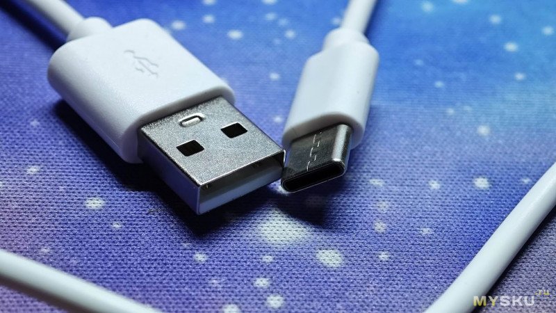 Зарядный кабель 80 сантиметровой длины имеет стандартный порт зарядки Type-C. Подойдёт для любого блока питания от смартфона.