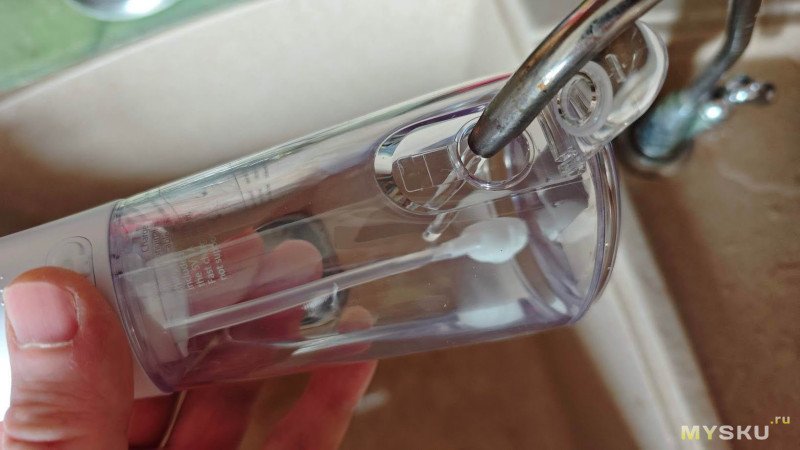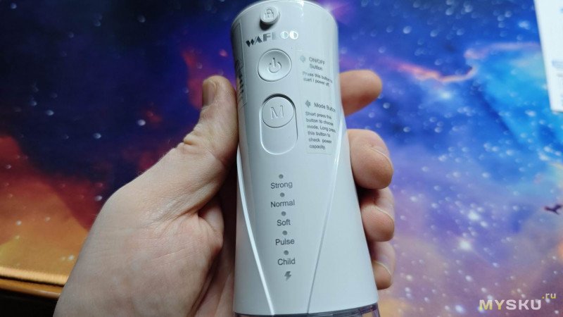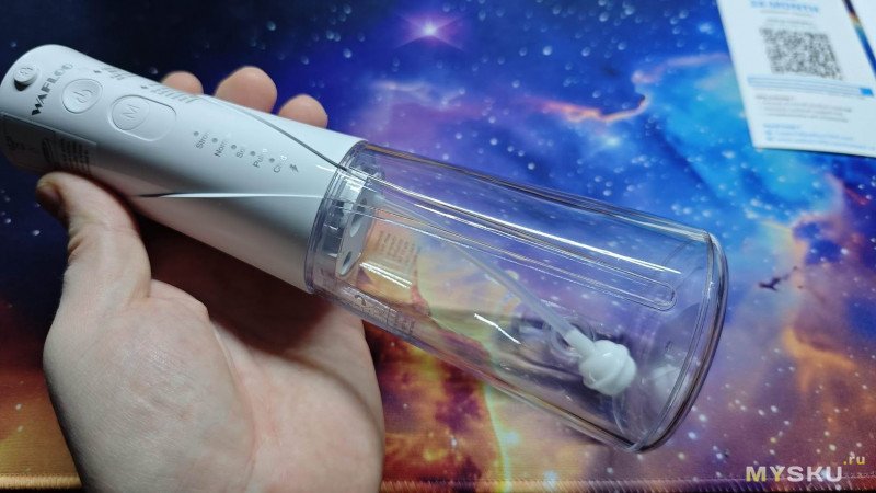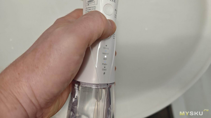 В самом мощном режиме сила струи такова, что вызывает даже болезненные ощущения в подставленной под неё ладони, чего уж там говорить о дёснах. А добивает такая струя до потолка, причем это далеко не предел.
