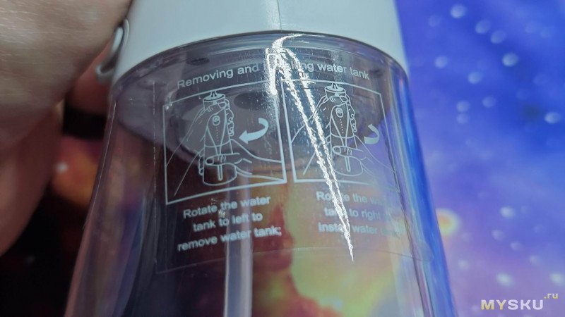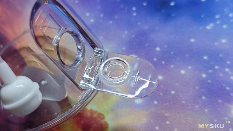 На колбе имеется наклейка, которая поясняет, что заливать воду можно также путём откручивания колбы от корпуса помпы.