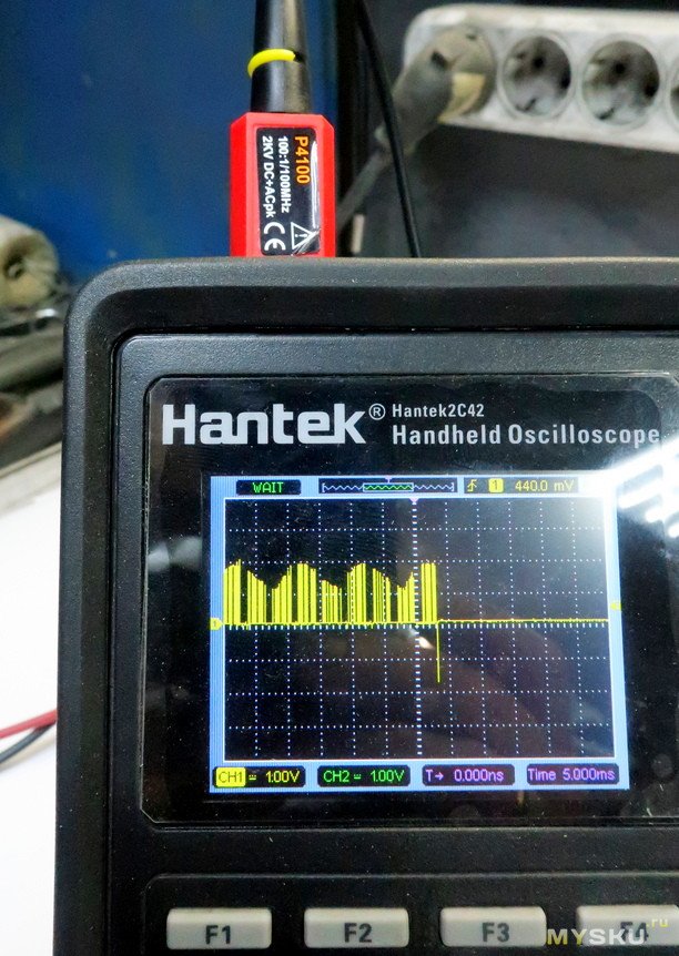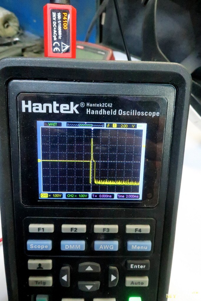 На всякий случай прошелся по фазам мотора осциллографом щуп (1:100).С подключенным статором осциллограмма мне чет не понравилась:)