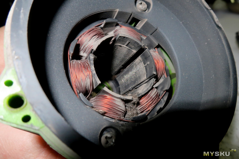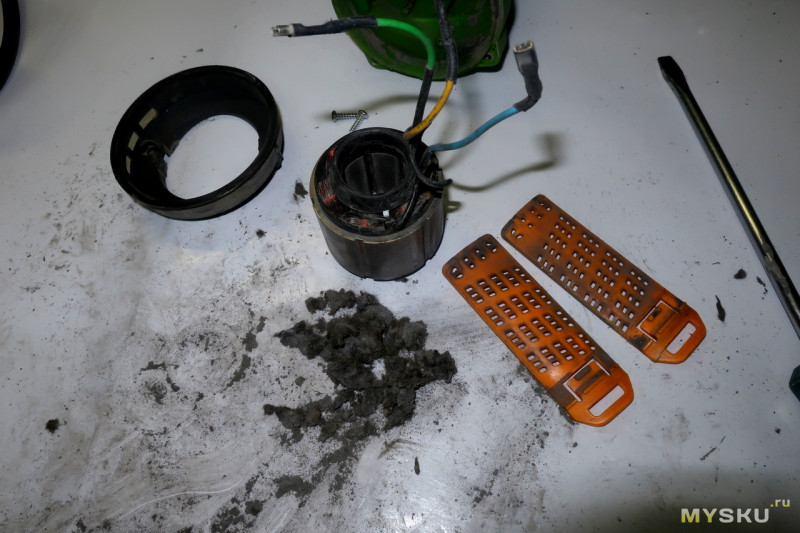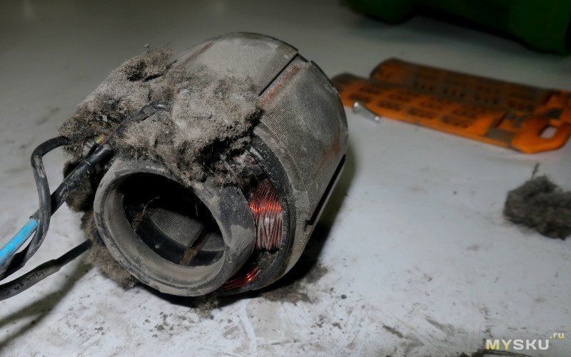 Думаю если бы не забитый для вентиляции/охлаждения статор, что вызвало перегрев и повреждение(пробой на железо) изоляции обмоток -то машинка бы еще поработала:) Хотя могу и ошибатся:)