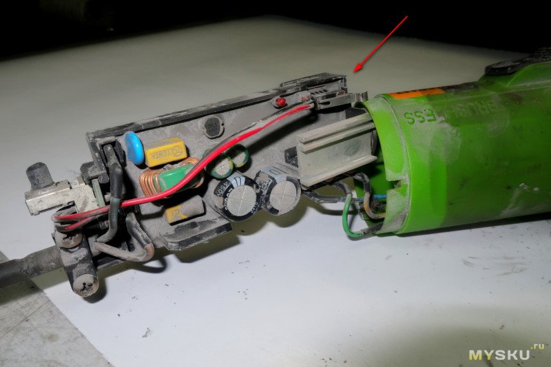 Ну чтож разбираем.На задней крышке пара длинных винтов.По бокам расположены сетки фильтры.Легко вытаскиваются для очистки.В руки сразу выпадает блок управления бесщеточным мотором.Регулятор оборотов и микрик включения тоже смонтированы на этом блоке.