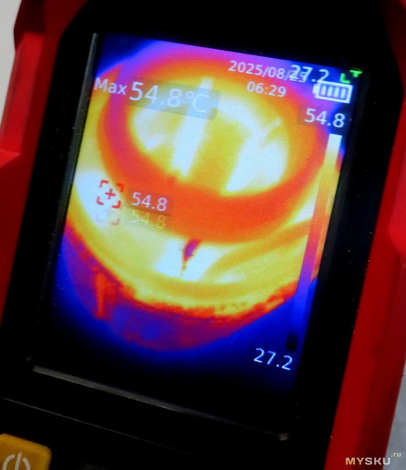 Еще при разборке обратил внимание что статор после кратковременных попыток включения горячеват.И это чувствовалось даже через корпус.Глянул тепловизором да что-то не то.