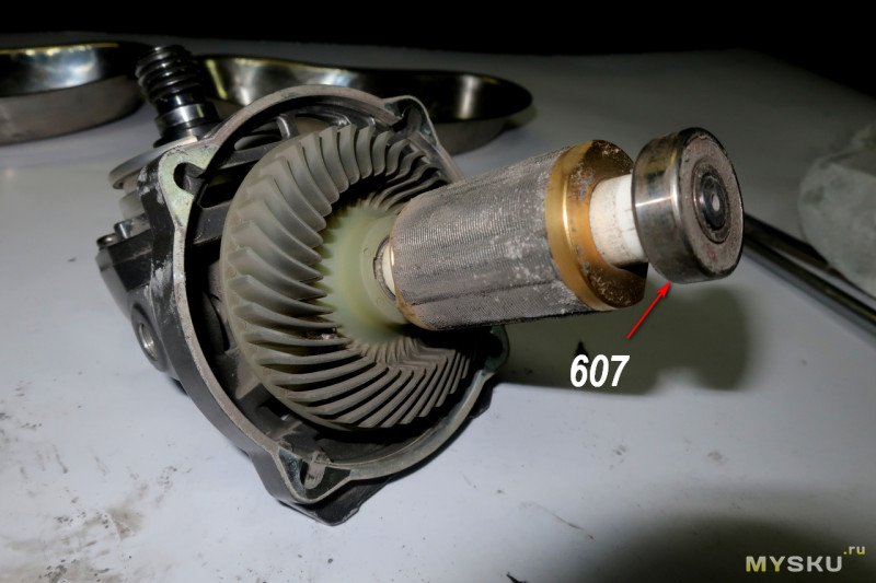 Откидываем плату и разбираем дальше.Четыре винта и выдергиваем редуктор с ротором.Подшипник в хорошем состоянии.