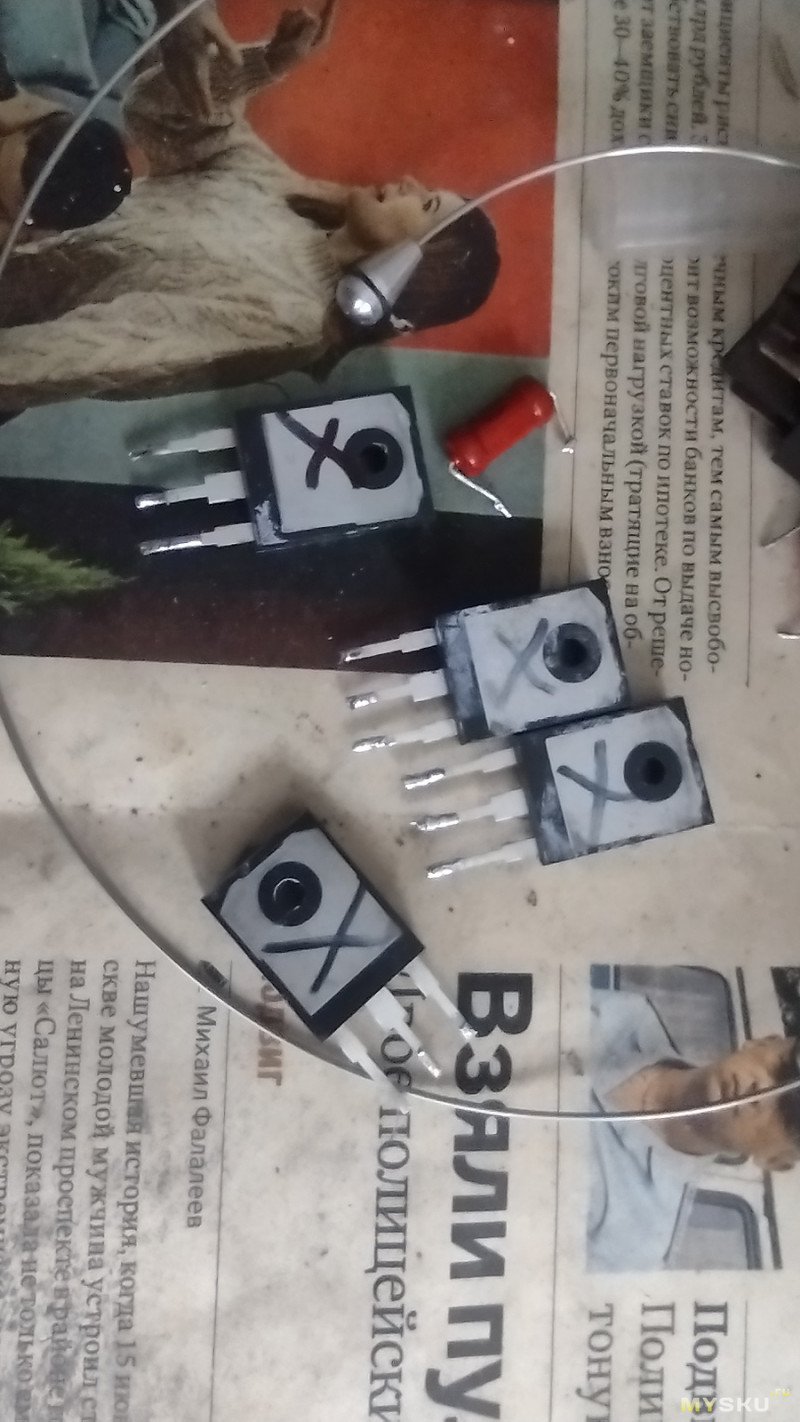 На алюминиевом радиаторе прикручены по три силовых элемента G15T65FULL с каждой стороны.Маркировку или даташит на них в нете не нашел.Может плохо искал…