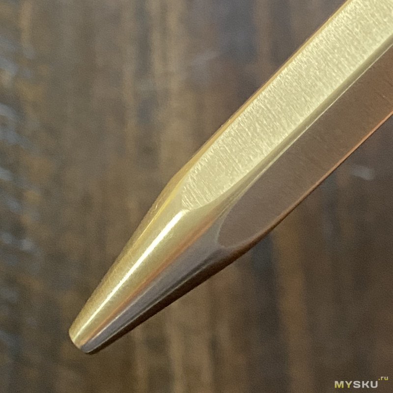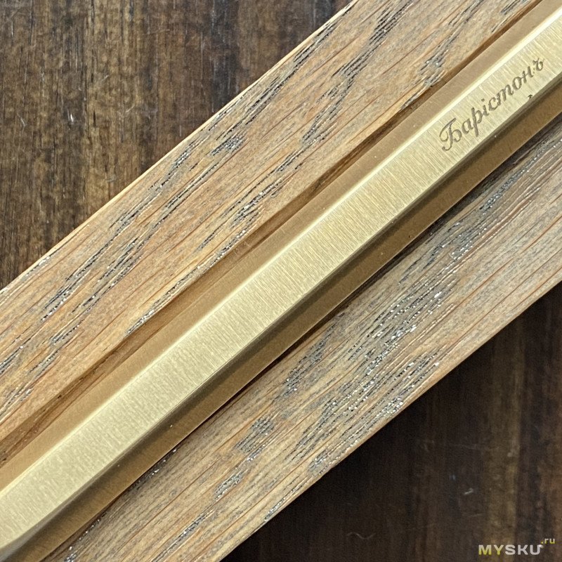 Теперь чуть подробнее о том, какая у меня модель. Мне захотелось бронзу, в шестигранном корпусе, с длинным наконечником — и это модель «Баритон». Умеренно длинная, увесистая, цепкая и хваткая — ручка сразу же легла в руку.