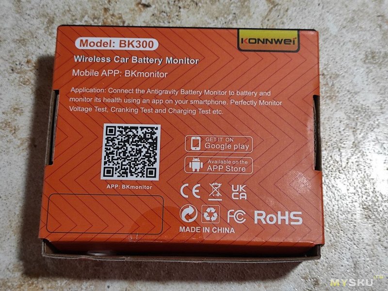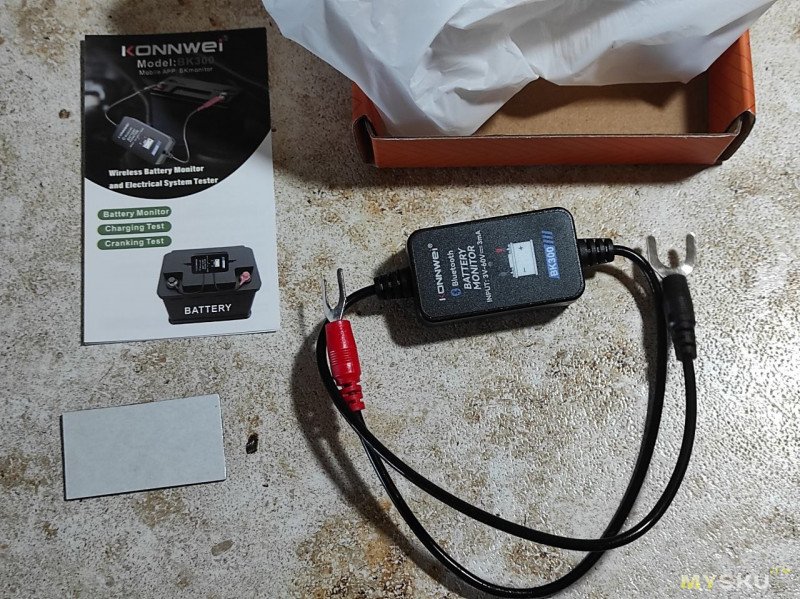 Комплектация: инструкция, двусторонний скотч и сам BK300 в белом пакетике. На его корпусе есть QR код для скачивания приложения, указан диапазон питания 3-60 вольт.