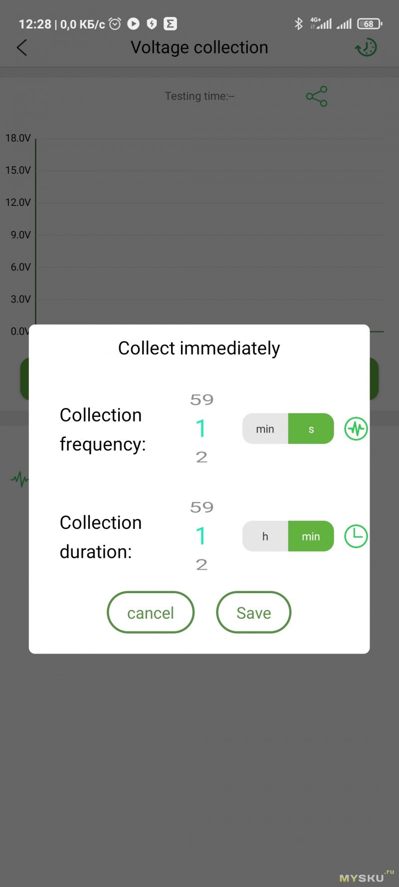 Но если выйти из этого окна на главное, то этот график теряется и при повторном входе в монитор графика мониторинга нет, пустая шкала. Если нажать Collect immediately, то приложение предупредит, что идет логирование и предложит прервать его или оставить все как есть.