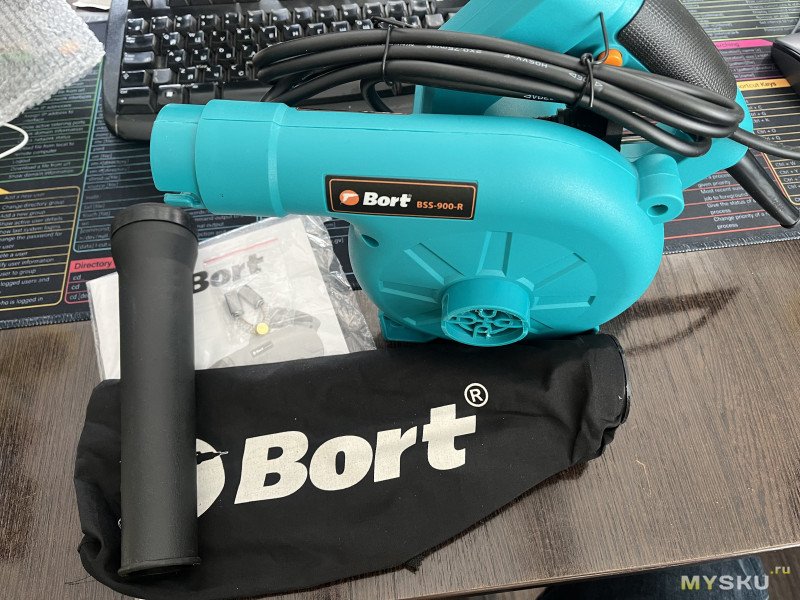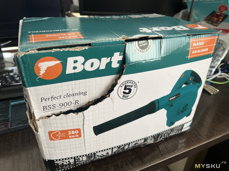 Мне эта воздуходувка приехала вот в таком виде. На подарок конечно не сгодится. Но мне и не на подарок, так что имейте в виду, такое может быть: