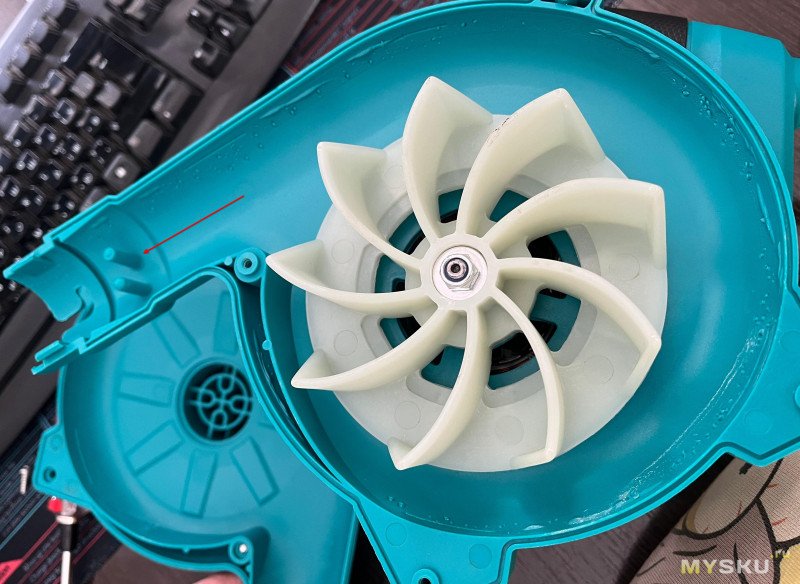 К счастью в этой воздуходувке, в отличие от DELI можно спокойно открутить гаечку и снять крыльчатку: