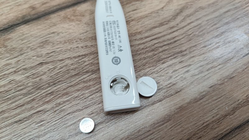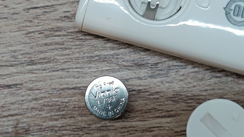Питается термометр от «таблетки» L736F. Маленький элемент размещаемый под подвижной крышкой. Самостоятельно не откроется, надо воспользоваться отверткой или монеткой.