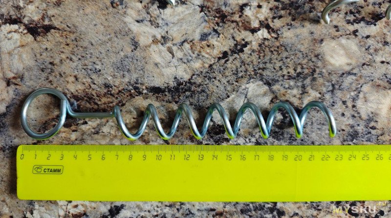 Длина колышка чуть больше 22 см. Длина рабочей спиральной части 16 см.