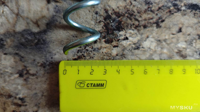 Внешний диаметр витка спирали чуть меньше 3 см. Внутренний диаметр кольца-держателя ровно 3 см.