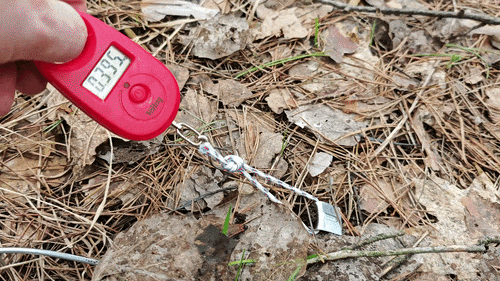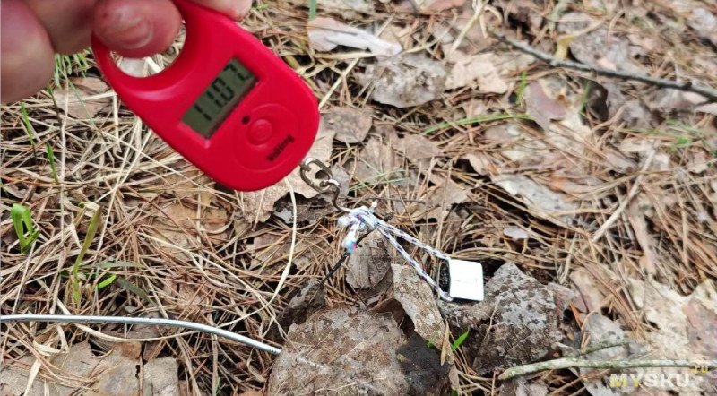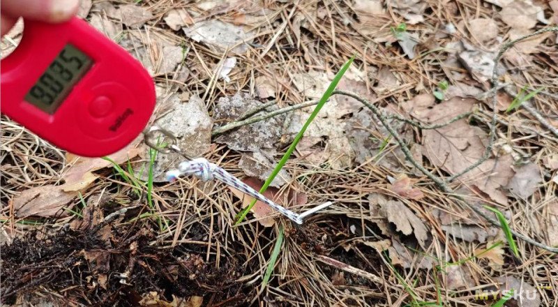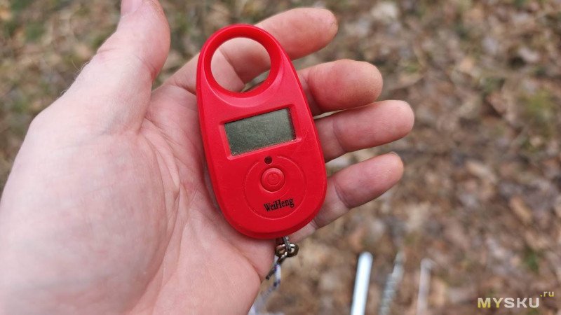 Беспристрастным арбитром в нашем соревновании выступит электронный безмен. Втыкаем по очереди колышки в грунт, а затем при помощи крюка безмена вытаскиваем.