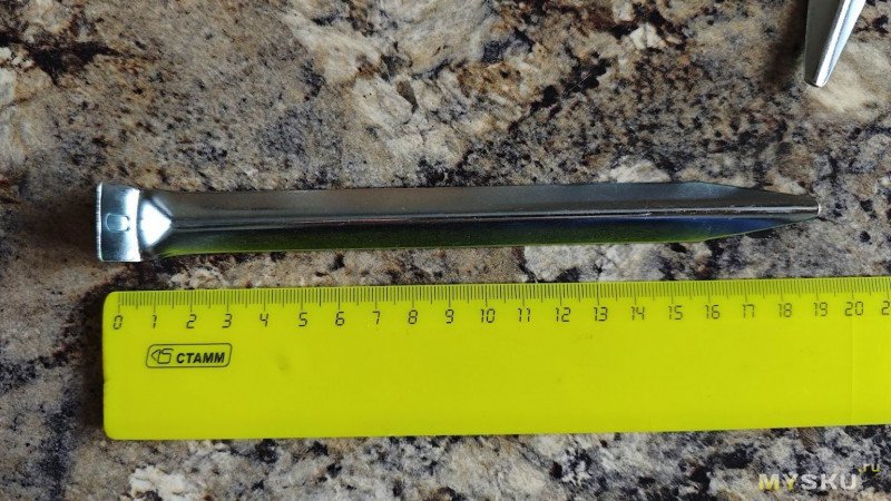 Длина колышка 19 см при ширине 2 см.