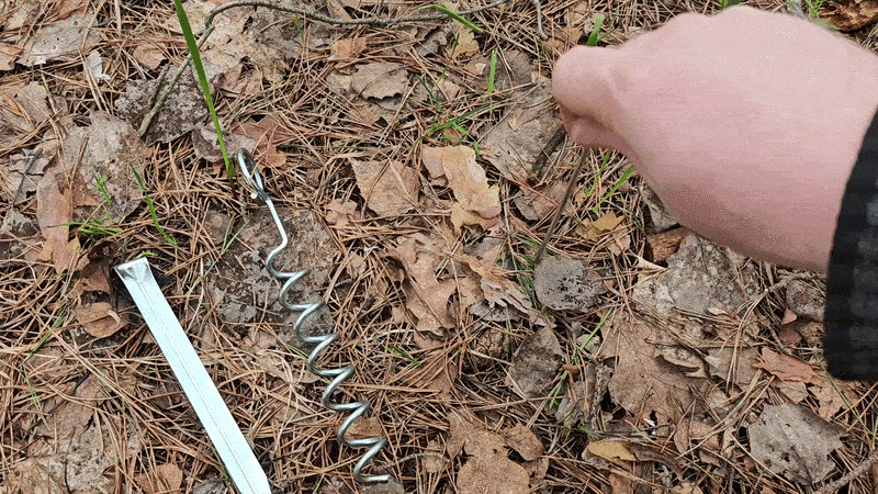 Безоговорочным лидером испытания стал винтовой колышек. Но дадим конкурентам второй шанс, вставим их правильно — под углом 45 градусов и используем петлю-растяжку, как у палатки.