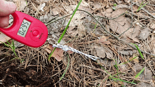 Цепляем за крюк безмен и вытягиваем колышек из земли, не забывая фиксировать его максимальные показания.